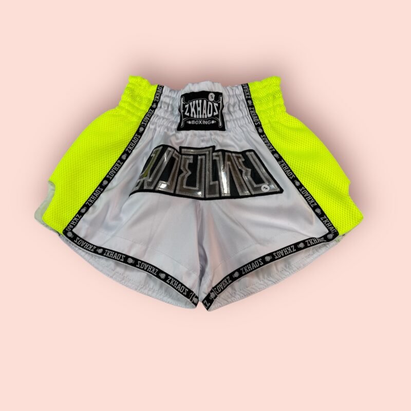 Shorts de MUAY THAI BRANCO/ AMERELO NEON